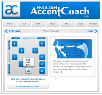 Ron Thompson, Associate Professor at the University of Alberta, has developed a website and mobile app to help non-native English speakers fine-tune their English pronunciation. It is called English Accent coach. The interactive game-like interface is based on the research into how pronunciation is best learned. The learners can track their progress.